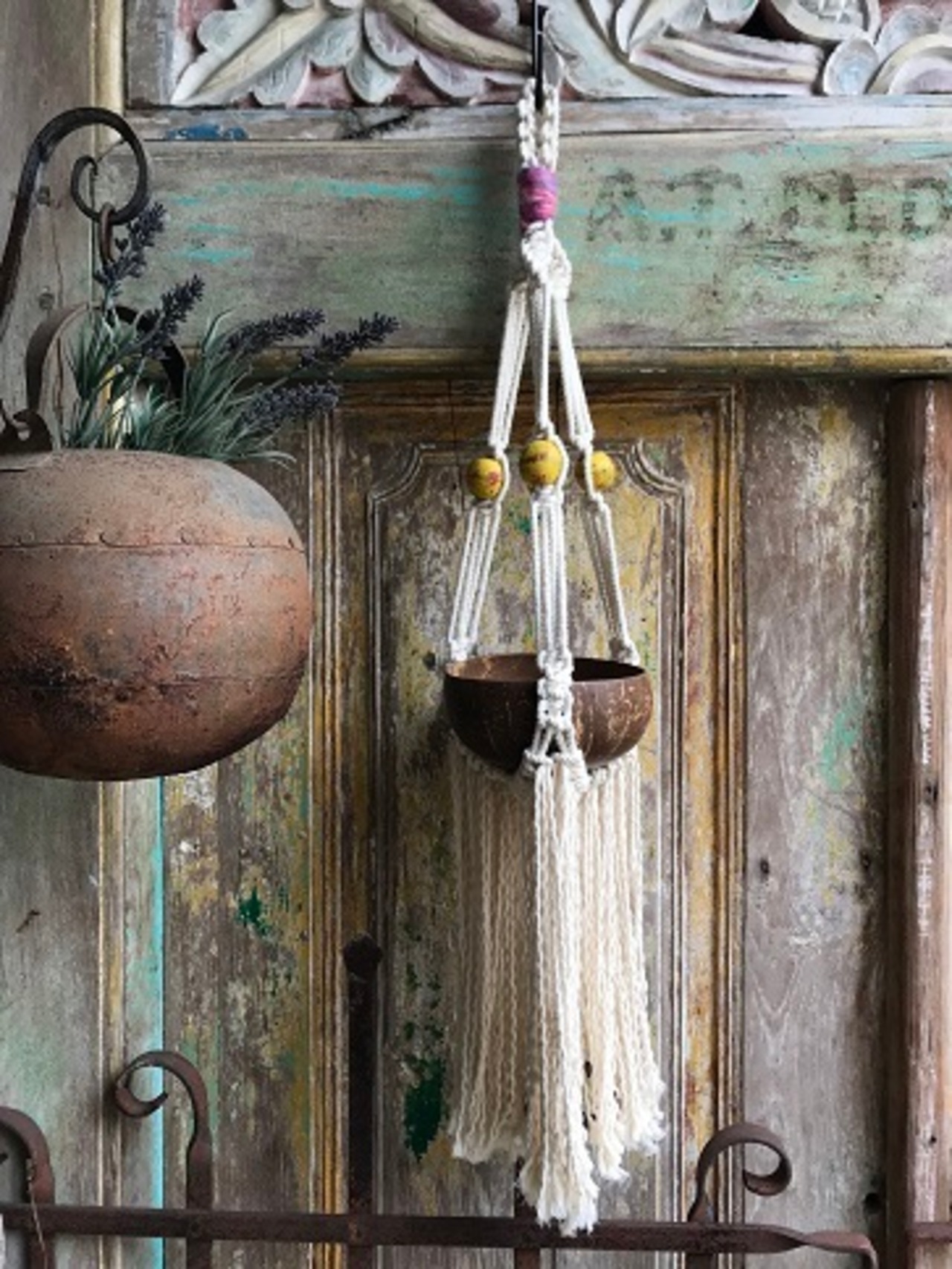 太コットン フリンジ カラー入り プラントハンガー ウッド ビーズ入り ギフト