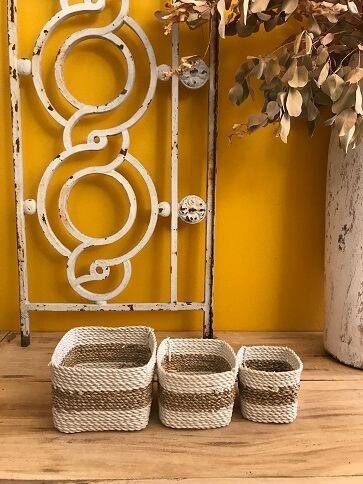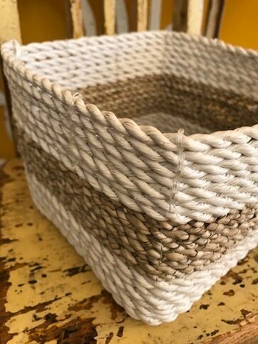 全てシーグラスで編まれたカゴ・ボックスです。