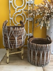 ブラウンのバスケットに、インパクトのあるコットンロープでデザインされてる、