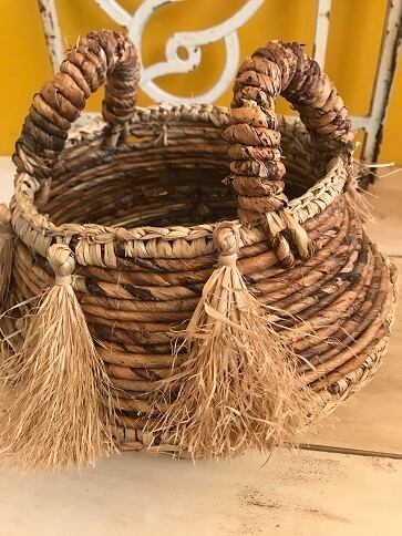 コーンリーフで編まれたカゴ・バスケットです。