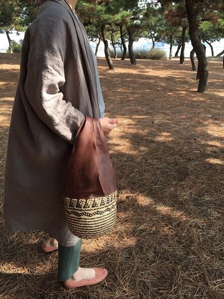 new柄! オリジナル レザー かごバッグ 籠バッグ