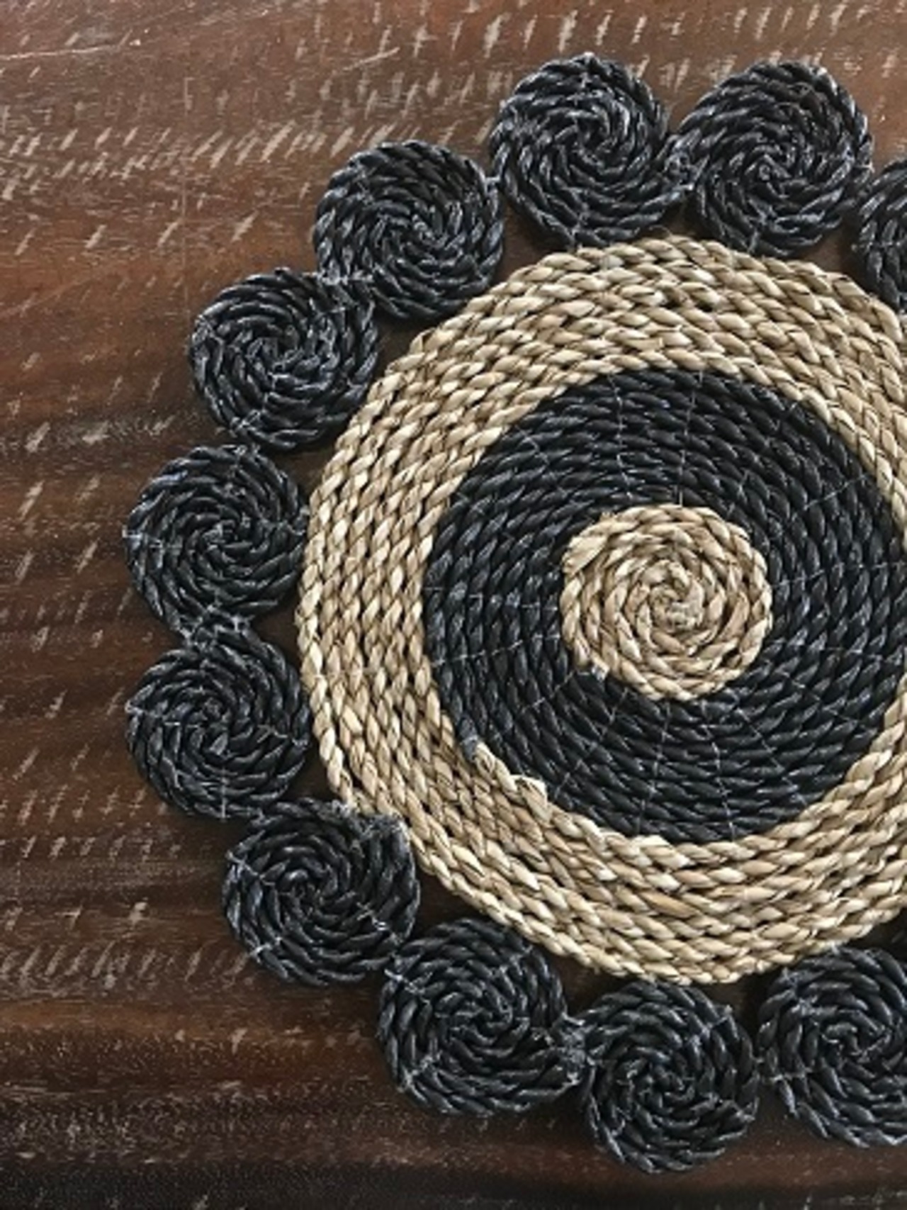 感謝価格!!シーグラス ランチョマット マット ラウンド ブラック&ナチュラル