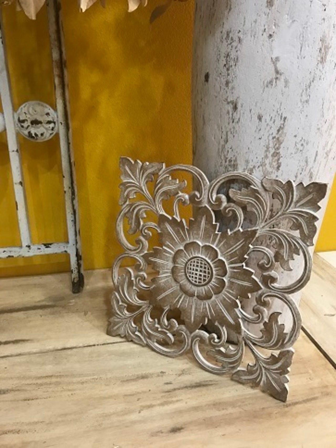 再販!!MDF 壁飾り 木彫り ウォールデコレーション アンティーク調 カフェ雑貨 フレンチ ウッド 四角 S