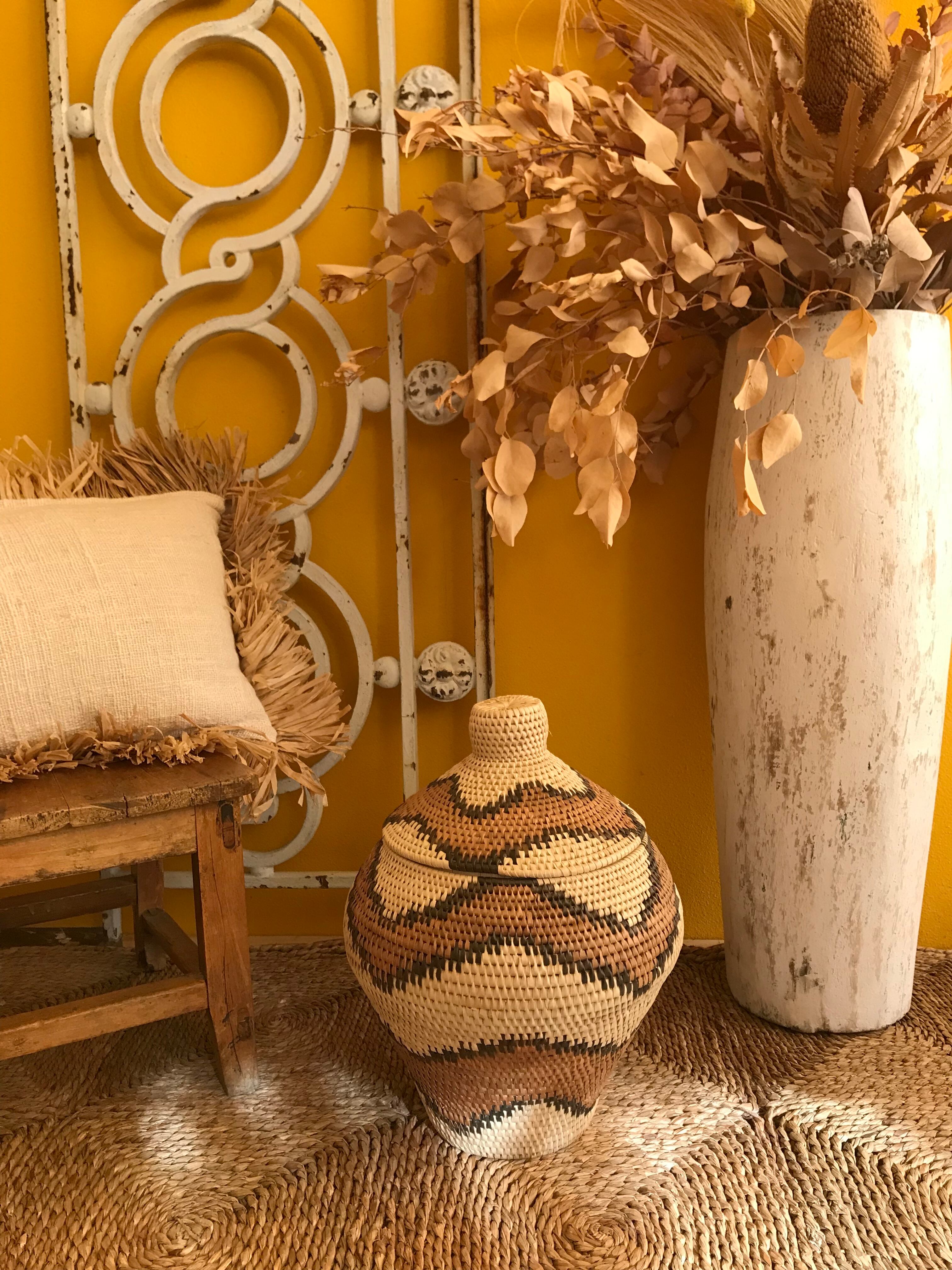 1つ1つ手作業で、丁寧に編みこまれた独特の模様のバスケット。