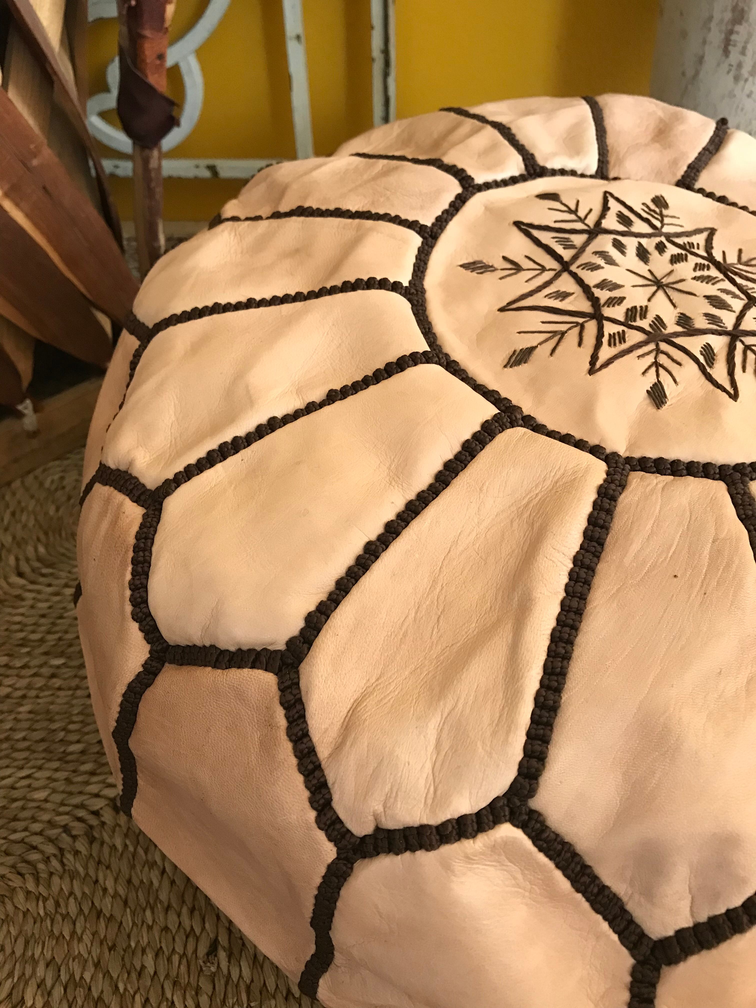 モロッコ直輸入 本革 レザープフ クッション スツール ナチュラル